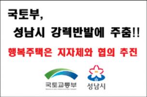 ¼º³²½ÃÀÇ µ¿ÀǸ¦ ±¸ÇÏÁö ¾Ê°í Áö³ 27ÀÏ ±¹Åä±³ÅëºÎ(ÀÌÇÏ ±¹ÅäºÎ)¿¡¼ LH°¡ º¸À¯ÇÑ ÅäÁö 12°÷°ú °ø°ø±â°ü ¹× ÁöÀÚü°¡ ¼ÒÀ¯ÇÑ 13°÷¿¡ ´ëÇØ ÀϹæÀûÀ¸·Î ¹ßÇ¥ÇÑ '¼º³²½Ã ³» ÇູÁÖÅà °Ç¼³'¿¡ ´ëÇØ ±¹ÅäºÎ°¡ 'ÀϹæÀûÀ¸·Î ÃßÁøÇÏÁö ¾Ê°Ú´Ù.'°í ÇÑ ¹ß ¹°·¯¼¹´Ù.