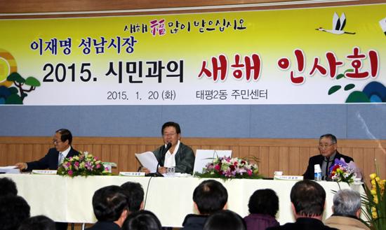 ÀÌÀç¸í ¼º³²½ÃÀåÀÌ ¿ÃÇØ·Î 5¹øÂ°·Î ½Ã¹Îµé°úÀÇ ¾ç¹æÇâ ¼ÒÅëÀ» À§ÇÑ '2015 ½Ã¹Î°úÀÇ »õÇØÀλçȸ'¸¦ ¿°í ¼º³²½Ã¹Îµé°ú Á÷Á¢ ¸¸³ª ½ÃÁ¤Çö¾ÈÀ» ¼³¸íÇϰí ÇöÀå¿¡¼ ½Ã¹ÎµéÀÇ ¾Ö·Î»çÇ× µîÀ» ûÃëÇÏ´Â °ÍÀº ¹°·Ð ½Ã¹Îµé°ú ÇÔ²² °ÝÀÌ ¾ø´Â Åä·ÐÀ» ÅëÇØ °¢Á¾ Áö¿ª ¹Î¿ø¿¡ ´ëÇÑ ÇØ°áÃ¥À» ¸ð»öÇÏ´Â ÀÚ¸®¸¦ ¸¶·ÃÇß´Ù.